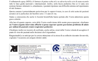 La carenza di salbutamolo non riguarda solo il nostro Paese. Entrambe le associazioni fanno parte della Federazione Europea delle Associazioni di Pazienti con malattie allergiche e respiratorie (EFA), che è membro dell’EMA PCWP, della Critical Medicine’s Alliance e del DG HERA Civil Society Forum.