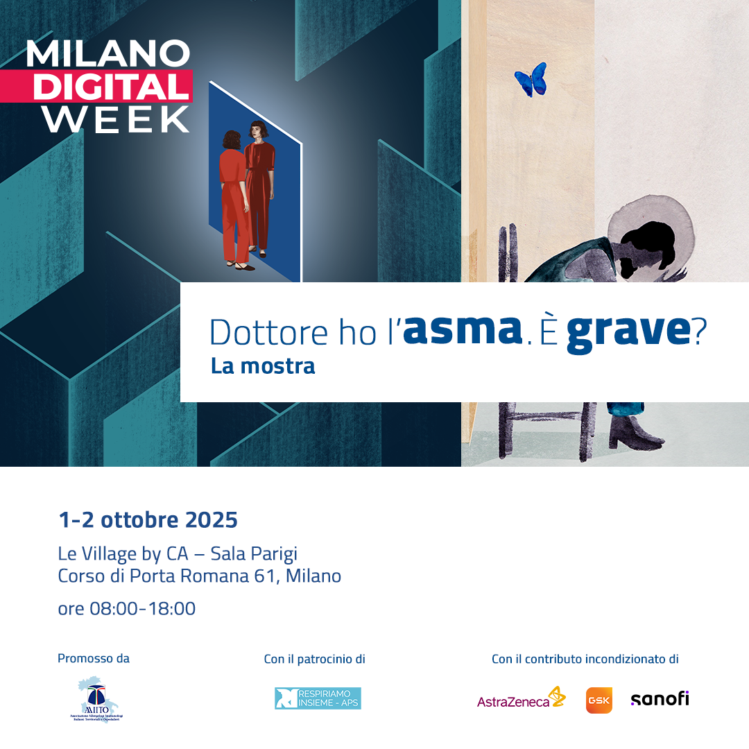 L’1 e il 2 ottobre 2025, all’interno della Milano Digital Week, sarà possibile visitare gratuitamente la mostra digitale “Dottore ho l’asma. È grave? La mostra”, un percorso artistico e immersivo che racconta l’asma grave attraverso il linguaggio dell’arte e delle nuove tecnologie.